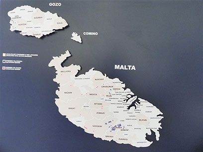 מפת מלטה. שלושה איים, סה"כ 400 אלף תושבים (צילומים: זיו ריינשטיין)