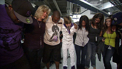 וגם עלילת המתח המאולצת שעולה עם צרידותו המדאיגה ערב ההופעה הגדולה, מנוצלת כדי לחזק את המחויבות שלו למעריצים. הבמאי אגב מקפיד להראות אותם בקהל מתוך רצון לחשוף את המגוון: מעריצות לבנות, שחורות, היספניות, סיניות ואפילו בנים - כולם מעריצים את ג'סטין.