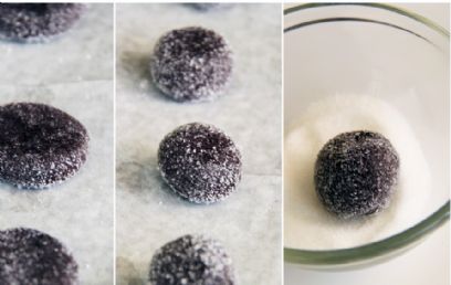 - מגלגלים את העוגיות בקערית קטנה של סוכר, כך שיצופו מכל צדדיהן ומחזירים לתבנית.