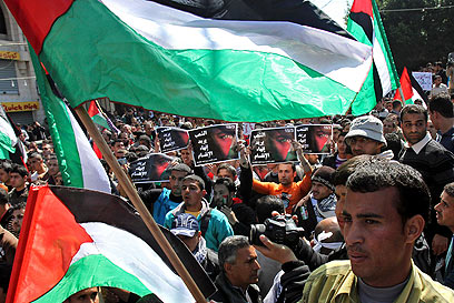 הפגנה ברמאללה לפיוס פנים פלסטיני. האתגר הראשון (צילום: AP)