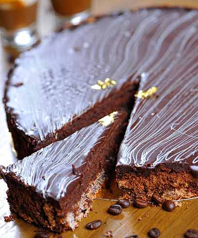 עוגת אגוזי לוז עם סופלה שוקולד-קפה