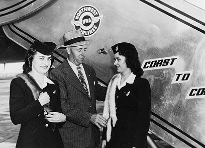 דיילות נורת'ווסט איירליינס, מרי פינלי ואחותה, בסמוך למטוס החברה (צילום: Delta Air Transport Heritage Museum, Inc)