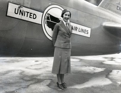 המדים עוצבו בהשראה צבאית. דיילת יונייטד איירליינס