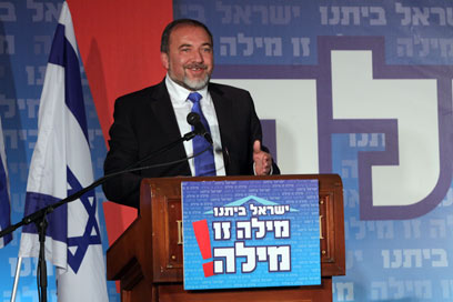 ליברמן בוועידת "ישראל ביתנו" (צילום: אוהד צויגנברג)