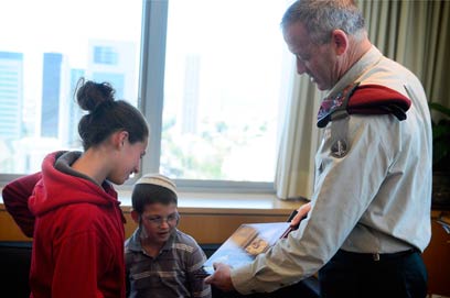 הרמטכ"ל גנץ עם רועי ותמר פוגל שניצלו, בסוף השבוע (צילום: דובר צה"ל)