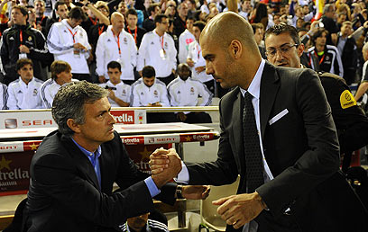 ז'וזה מוריניו עם פפ גווארדיולה. תואר ראשון למיוחד בספרד (AFP)