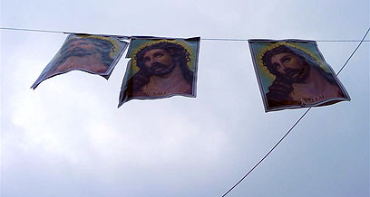 כרזות ישוע המבשרות על 'שבת האור' בכניסה לעיר (צילומים: זיו ריינשטיין)