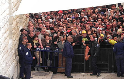 חשבתם שהיה תור להיכנס? חכו, צריך גם לצאת. הצליינים בסיום הטקס