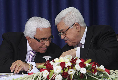 אבו מאזן ומשה שחל. "לא ידענו אם להגיע או לא" (צילום: גיל יוחנן)