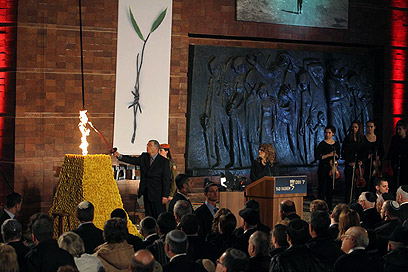 הטקס הערב ביד ושם. "נצח ישראל לא ישקר, והאדם ינצח" (צילום: גיל יוחנן)