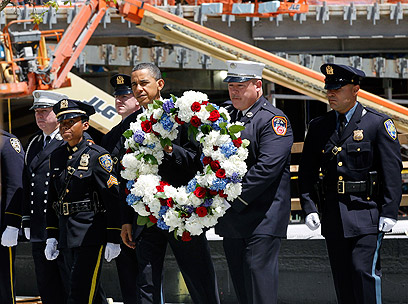 אובמה מניח זר ב"גראונד זירו" (צילום: AP)