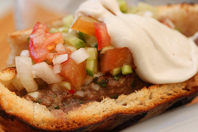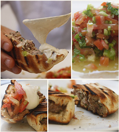 - מורידים מהאש. מחזיקים במפית נייר. ממלאים בטחינה, פלפלים חריפים מרוסקים וסלט ערבי או סלט של קוביות עגבנייה, נענע ופלפל חריף. אוכלים בביסים גדולים, נוטפי טחינה וחולמים כבר על המנה הבאה.