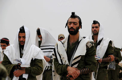 חיילי הנח"ל החרדי בתפילה (צילום: דובר צה"ל)
