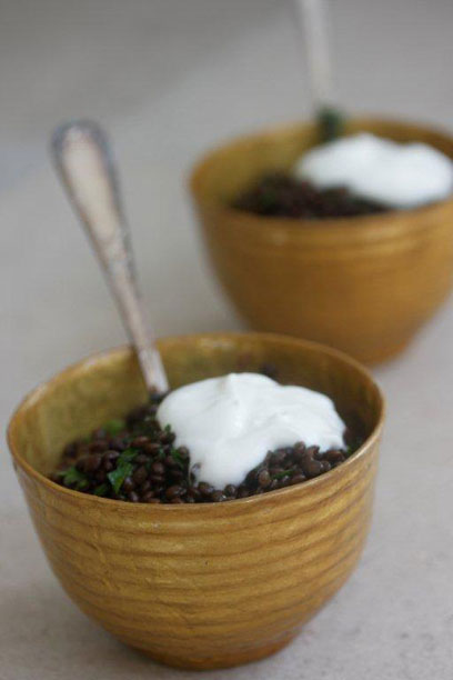 סלט עדשים שחורות ויוגורט (צילום: מיכל וקסמן)