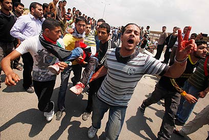 ההפגנות במעבר ארז. "לפחות 45 בני אדם נפצעו" (צילום: רויטרס)