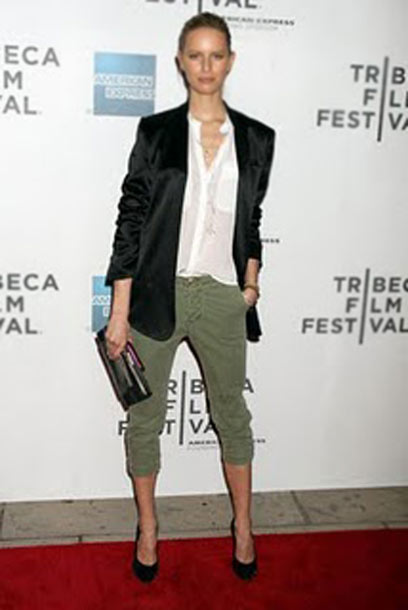 לקול שאון מחיאות הכפיים שלכן ושלכם קבלו את הטופ מודל קרולינה קורקובה שמראה לכו-לנו שגלאם על השטיח האדום ממש לא חייב להגיע בדמות שמלת ערב. גם קרולינה בחרה בשילוב אלמנטים סותרים לכאורה; ז'קט גברי וסטילטו סקסיות בצבע שחור, פלוס חולצה מכופתרת לבנה בגזרת אובר סייז ומכנסי השלושת רבעי בשיק הצבאי. וואו איזה גיוון.