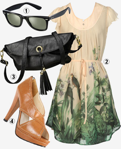 איך תעשי זאת בעצמך: חפשי לך שמלת הדפס א-לה בעלי-חיים או אלמנטים מהטבע, ושלבי אותם עם פלטפורמות בצבע החום-ג'ינג'י החביב עלינו במיוחד. לא לשכוח משקפי ריי באן. לנו כבר יש.