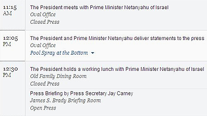 לוח הזמנים המקורי של אובמה. 18:15 הפגישה, 19:05 התדרוך