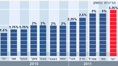 העלאת הריבית לחודש יוני היא ההעלאה העשירית שמבצע נגיד בנק ישראל מאז שינה את מדיניות הריבית המרחיבה שלו, בחודש ספטמבר 2009. במהלך תקופה זו הועלתה הריבית במשק בשיעור מצטבר של 2.75%.