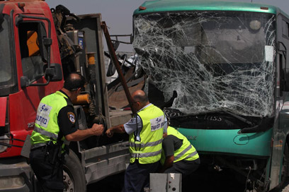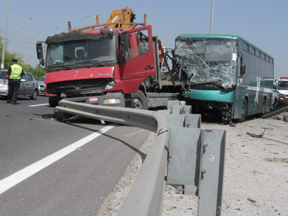 הרוג ו-32 פצועים בתאונה בין אוטובוס למשאית