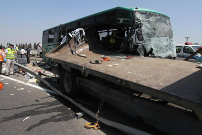 בכביש 1 סמוך למחלף בן שמן, "הייתה בהתחלה דממת מוות, כמו בפיגוע". בין הפצועים שניים במצב קשה ו-5 בינוני. נהג האוטובוס לחוקרים: "לא יודע מה קרה, התנגשתי בו מאחורה". לדברי המחלצים, "נוסע נלכד בכסא והפציעה הכריעה אותו"