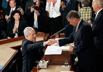 ביידן וביינר עם נתניהו. קיבל תשואות רמות בקונגרס (צילום: רויטרס)