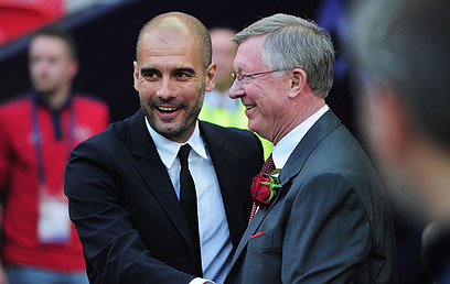 גווארדיולה עם פרגיסון, סליחה פרגוסון. מאמנים גדולים (צילום: AFP)