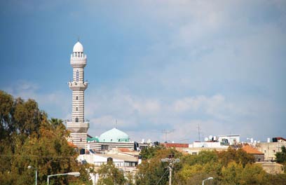 המסגד בכפר כמא וחלק ממרכז הכפר הנראים מהכביש הראשי