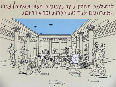 איור המראה את פעילות הרומאים בבית המרחץ. איפה נרשמים לקאנטרי?