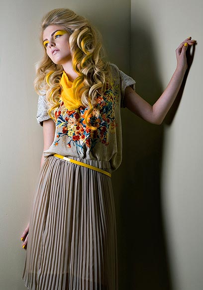 שמלה: הייץ' אנד אם, 249 שקל; חזייה: אוסף פרטי; מטפחת: פרישופ, 10 שקלים; חגורה: אמריקן אפרל, 172 שקל; צמיד: אלדו, 49 שקל; תיק: טו2טו, 220 שקל
