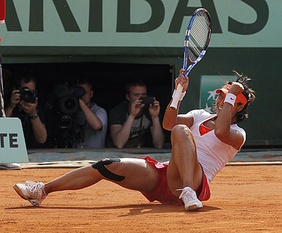 היסטוריה סינית בפריז. לי נה חוגגת אחרי הנקודה האחרונה (צילום: AFP)