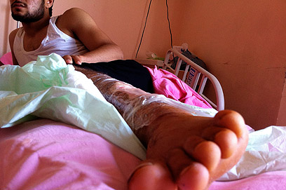 אלימות קשה. סורי שאושפז בבית חולים בעיר הטורקית חטאי (צילום: AFP)