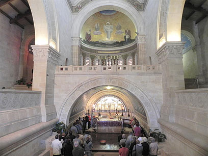 כנסיית ההישתנות. בציור במרכז: ישוע מתגלה לתלמידיו, בין משה ואליהו
