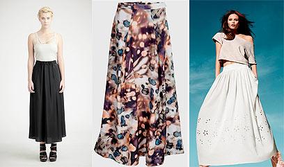 חצאית לבנה: H&M (צילום: הנס מוריץ), מקסי פרחונית: ד"ר דנים לדה ברנץ' (צילום: יח"צ) חצאית שחורה: גוסטה (צילום: יוני פז)