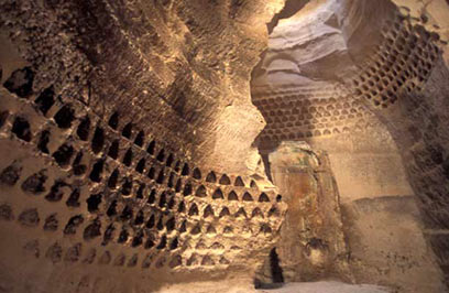מקבץ מערות פעמון ומערות קולומבריום שייתכן ששימשו לגידול יונים ומאוחר יותר למגורים, אחסון וקבורה. חלק מהמערות סמוכות זו לזו, וביניהן מחברת מערכת מחילות ומנהרות. הקרקע מלאה בפתחי מערות ומחילות שכדאי לשים לב אליהם כדי לא להיפגע, בייחוד אם מגיעים עם ילדים.