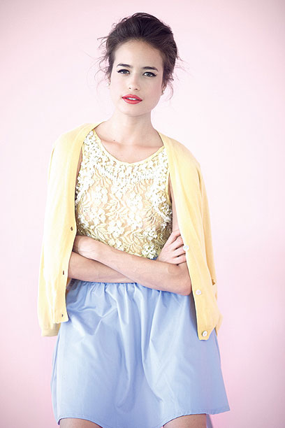 גופיית תחרה וחרוזים (470 שקל, טופשופ), חצאית (190 שקל, twentyfourseven), קרדיגן (170 שקל, מנגו)