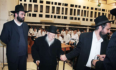 הרב לפקוביץ' בביקור בישיבה (באדיבות יהודה פרקוביץ', "כיכר השבת")