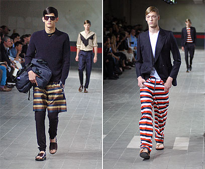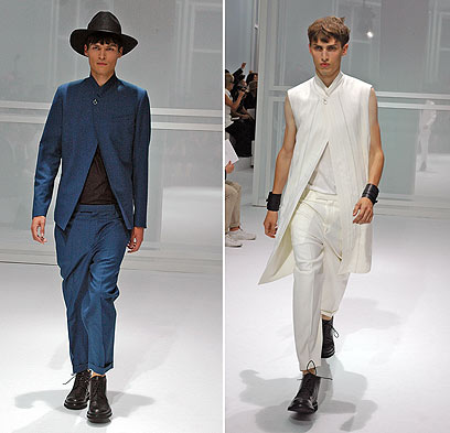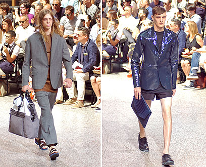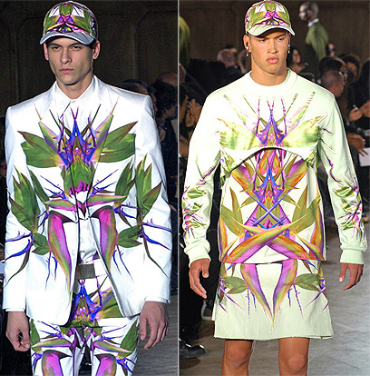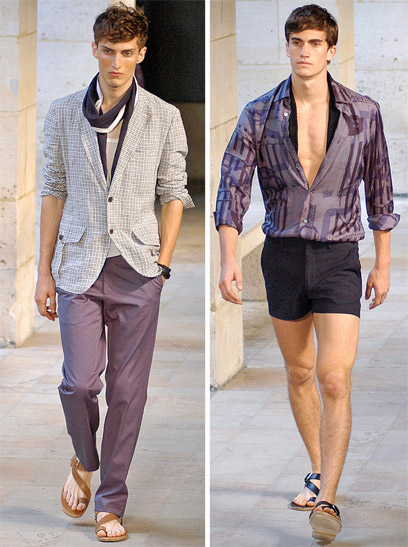 בלטו לטובה כמה חליפות צמודות ותכשיטים מדהימים - בעיקר עגילים. ריקרדו טיצ'י לא היה המעצב היחיד ששילב חצאית או אלמנטים מהמלתחה הנשית בתצוגות הגברים שהתקיימו בפריז. ברוב החליפות מכנסי השורט הוחלפו בחצאית וסנדלים גסים השלימו את המראה. טיצי' השתמש באותו הדפס כמעט בכל הדגמים, מה שהפך את התצוגה למעט משעממת.