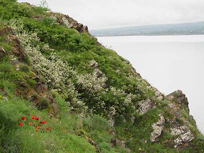 אחד משלושת האגמים הגדולים במרחב הארמני. פריחה ליד אגם סוואן