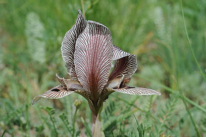 משורטט בקווים שחורים-ארגמניים. איריס חד-אונות