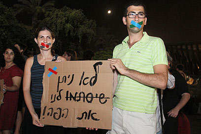 עשרות פעילי שמאל מחו בתל-אביב נגד אישור החוק (צילום: עופר עמרם)