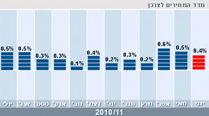 האינפלציה עומדת כעת על 4.2%, חריגה של 1.2% מהגבול שקבעה הממשלה. הקוטג' אמנם הוזל מעט, אך החמאה התייקרה ב-16% והשמנת ב-9.7%. עוד בלטו בהתייקרות: הלבשה - 9.3%, קפה - 7.9% ודיור - 0.5%. הוזלו במיוחד ספרים - 11.6%, פירות טריים - 4.7% ודלק ושמנים לרכב - 2.1%