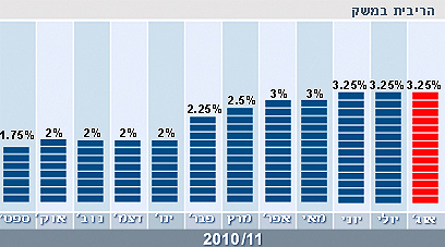 בנק ישראל החליט הערב (ב') להשאיר את הריבית במשק על רמתה הנוכחית - 3.25%. ההחלטה התקבלה למרות גל ההתייקרויות במשק, בעיקר על רקע חשש להאטה בצמיחה עקב משבר החובות באירופה.