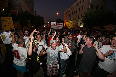 המפגינים חסמו את הכביש מול בית רה"מ בירושלים (צילום: גיל יוחנן)