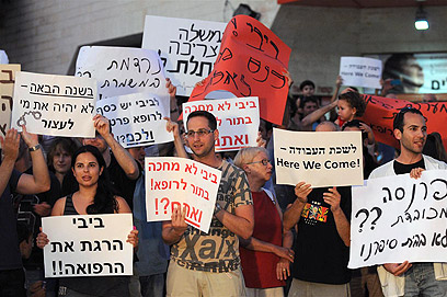 מפגינים מול הסינמטק בתל-אביב, הערב. "לטובת החולים" (צילום: ירון ברנר)