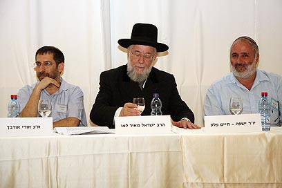 חיים פלק, הרב לאו וח"כ אורבך בכנס "ישפה" (צילום: מתניה אופיר)