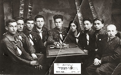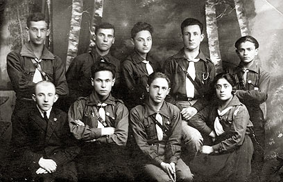 5. מייסדי תנועת השומר הצעיר בבריסק, יושב שני משמאל: מאיר פרידמן - ראש קן השוה"צ בריסק. מעליו עומד עקיבא קרביצקי.