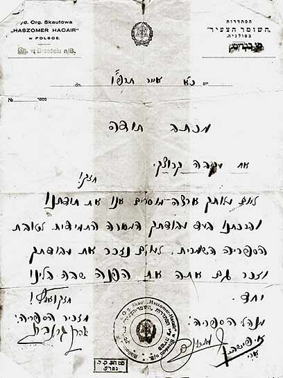 11. מכתב תודה ממנהלי הספרייה השומרית בבריסק: א. פיישבין, ואהרון גרינברג, לעקיבא עם עלייתו לארץ ישראל.