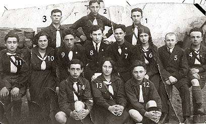 13. חברי הנהגת השוה"צ המקומית וראשי הקבוצות, פסח תרפ"ה: 1-מנס, 2-פרינגרטן, 3-עקיבא קרביצקי, 4-זיגמן, 5-מרדכי נוימרק, 6-רחל בגין (אחותו של מנחם), 7-מאיר פרידמן, 8-יוסף אלסטר, 9-מאיר לנצי, 10-צילה יונגרמן, 11-חלפי, 12-יעקב לוין, 13-אסתר רימלנד, 14-צבי נוימן.