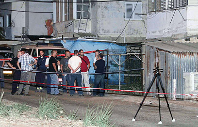 זירת הרצח. "הם היו שלושה על אחד" (צילום: עידו ארז)
